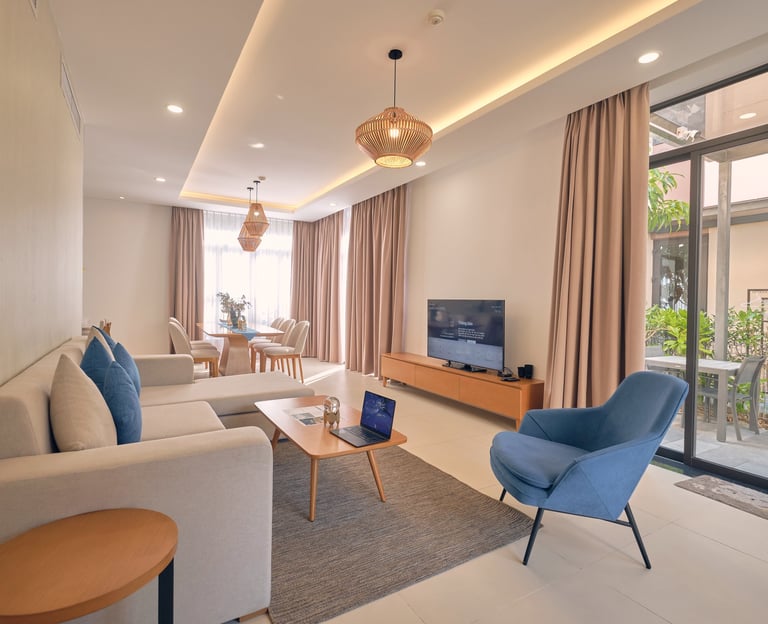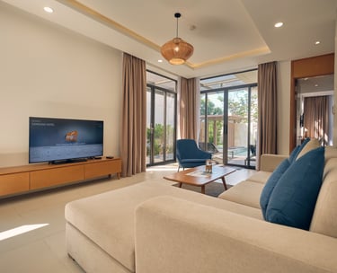 Indulge in the relaxing embrace of our Tropical Haven villa, designed for comfort with elegant interiors and breathtaking ocean vistas, ensuring a memorable getaway experience.
