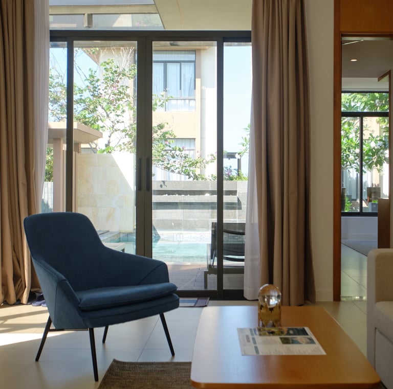 Experience luxury in our spacious 2-bedroom villa with private pool and lush garden surroundings.